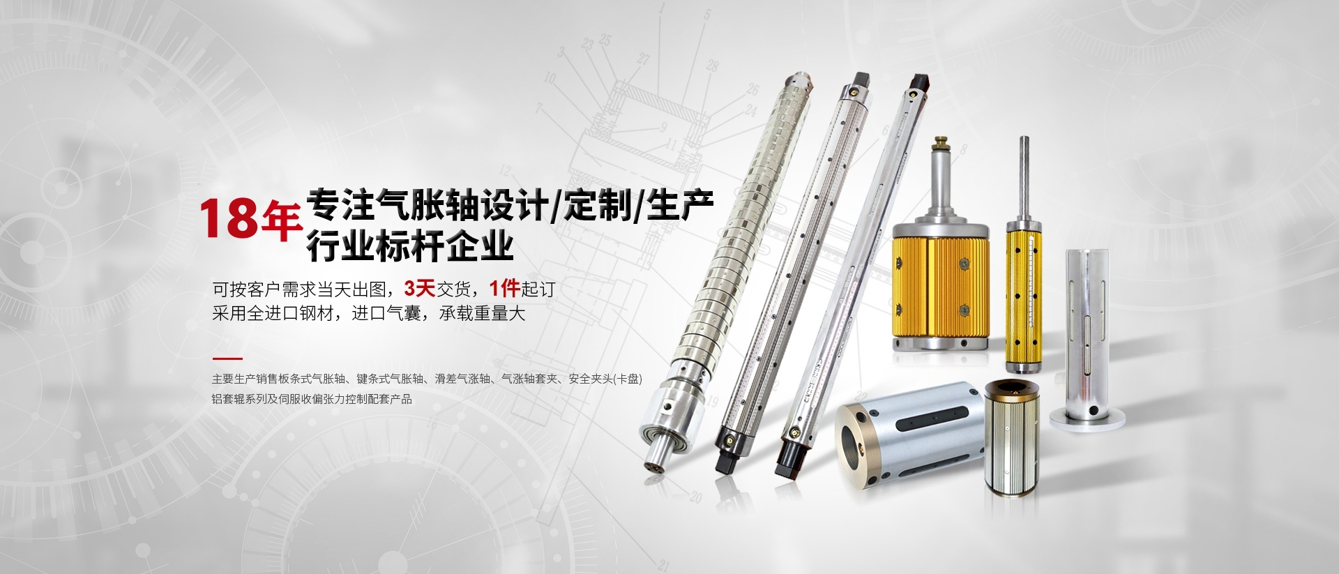(氣漲軸)漲緊軸生產(chǎn)廠家生產(chǎn)的氣脹軸氣漲軸主要由前套、后套、氣缸、內(nèi)管、氣囊、凸形鍵盤等部分組成,氣漲軸膨脹套由表面氧化...